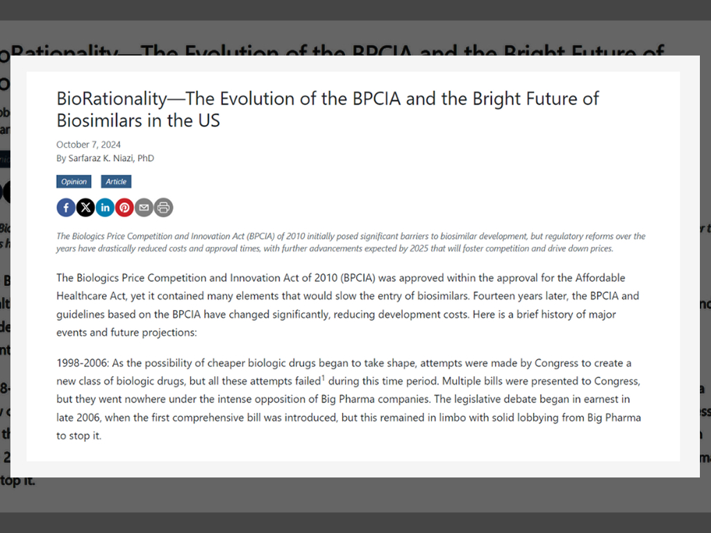 BioRationality—the Evolution of the bpcia and the bright future of Biosimilars in the us